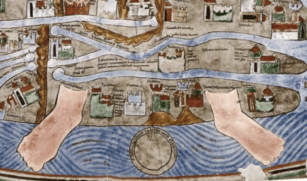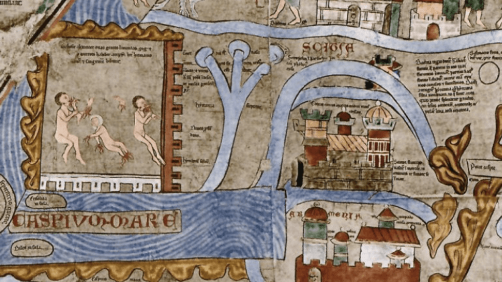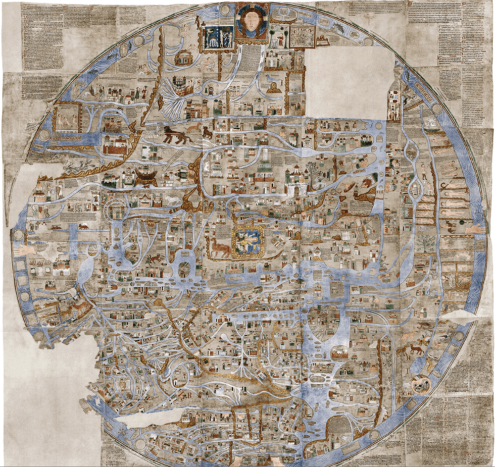 "The map offers a limited, but richly mythical view of the world. It is a land where Christian doctrine infuses every detail," says Engelson. "The lands beyond the known world are populated by hostile people and monsters to be feared. Remarkably, this landscape is still resonant among certain religious conservatives in 21st century America."